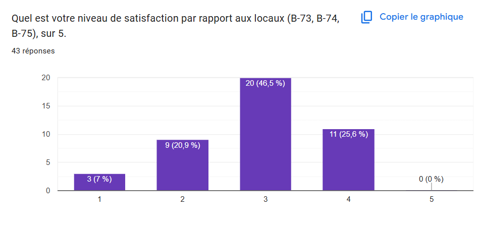 Comme évoqué précédemment, la “chill zone”. 93 % des étudiants interrogés se montrent favorables à cette idée. L’idée derrière ce concept est de créer un coin qui permettrait aux étudiants de renforcer leurs liens. Nous pensions y ajouter une machine à café/thé et quelques sièges confortables tels que des pouffes.